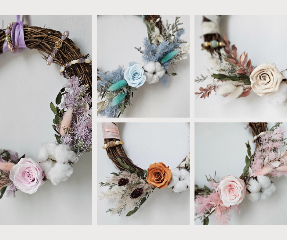 Embrace the power of harmony and healing as you embark on a journey of creative expression and spiritual connection at our Harmony & Healing Crystal Wreath Workshop. In collaboration with our lovely neighbour, Windflower Florist, we have designed an immersive hands-on experience that invites you to explore the art of crafting beautiful wreaths adorned with mesmerizing crystals and everlasting flowers.