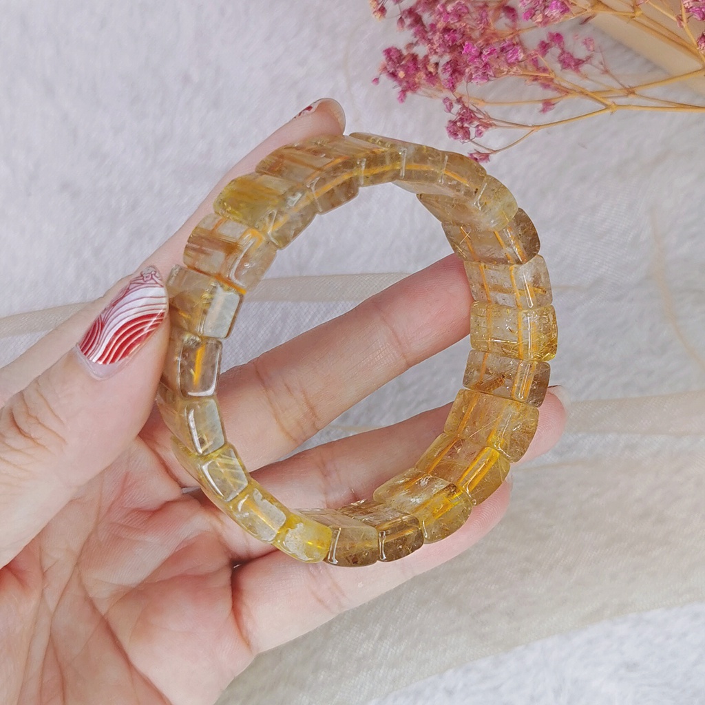 Golden Rutile - wrist size ~16.5cm , bead height ~15.3mm , thickness ~6.0mm