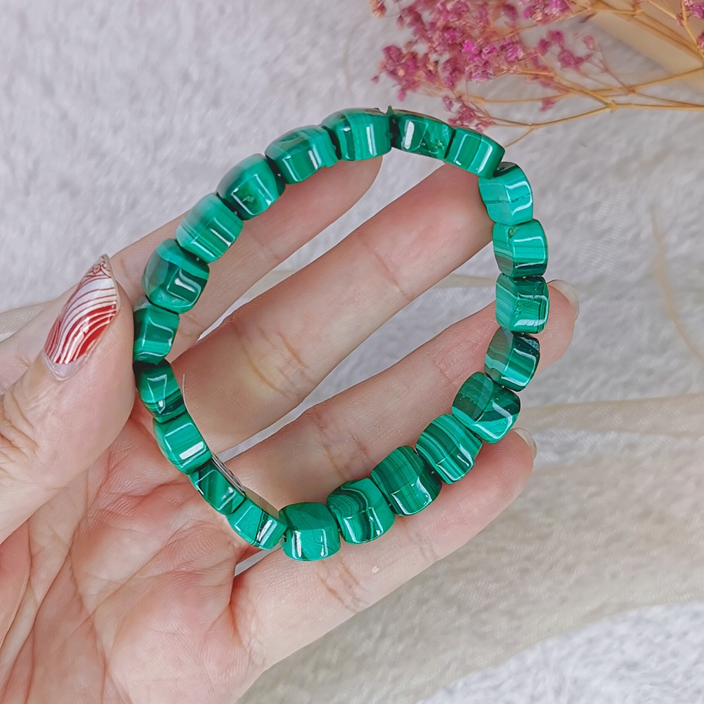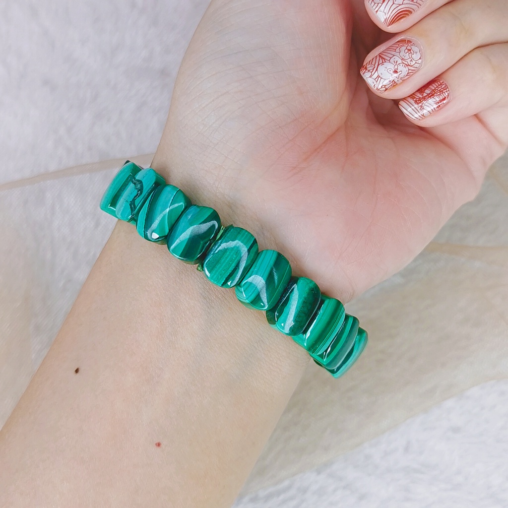 Malachite - wrist size ~16.0cm , bead height ~12.2mm , thickness ~5.0mm